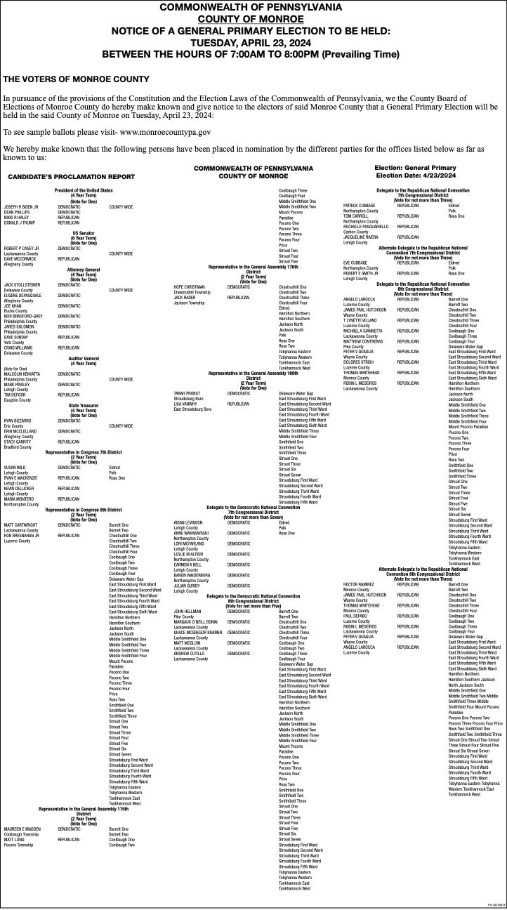 held in the said County of Monroe on Tuesday, April 23, 2024: