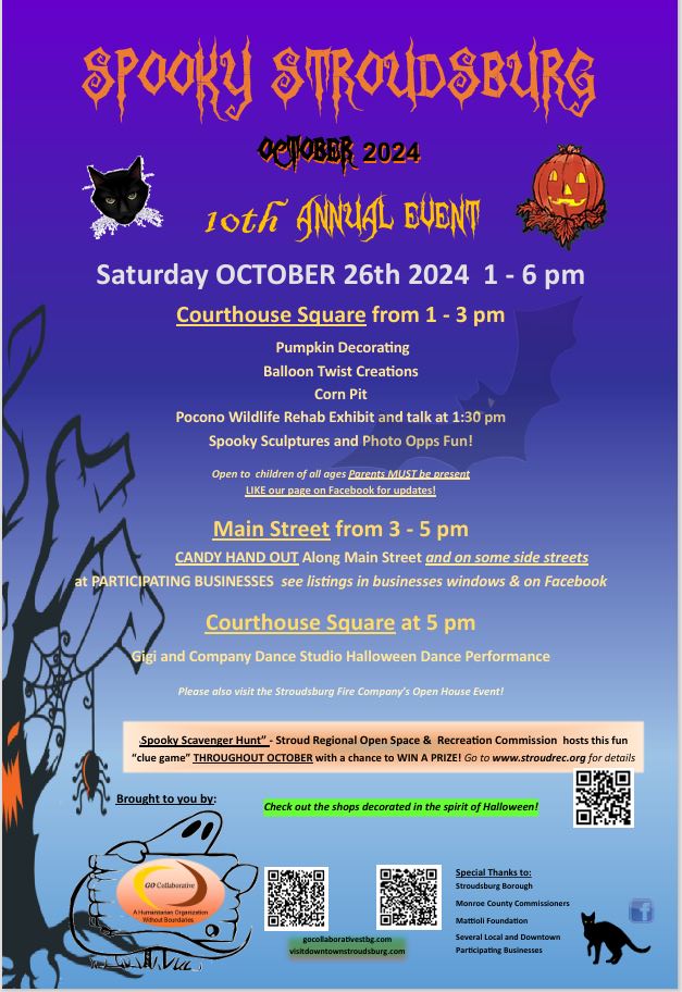 Spooky Stroudsburg Event Saturday OCTOBER 26th 2024 1 - 6 pm