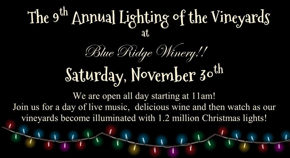 Please join us in kicking off the holiday season with our Annual Lighting of the Vineyards and let us make your holidays bright!!