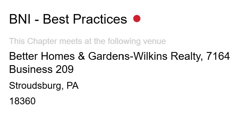 If you are interested in growing your business, I would like to invite you to attend the Kick-Off meeting of the BNI-Best Practices Chapter on Tuesday February 3rd , at Better Homes & Garden Real Estate Wilkins office: