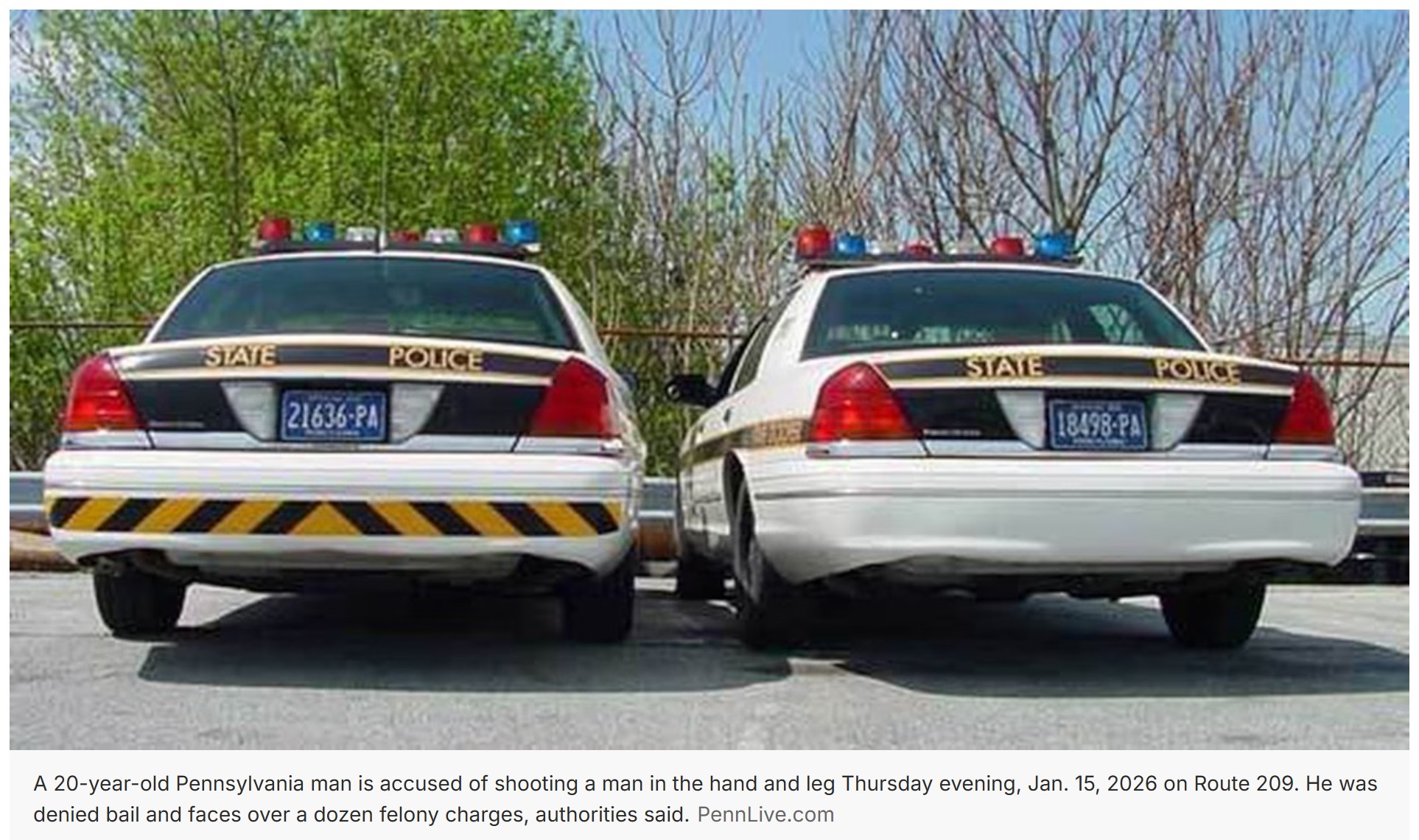 Pennsylvania State Police in Stroudsburg responded shortly before 6:30 p.m. to the area of Edward Smith Boulevard and Milford Road (Route 209) in Middle Smithfield Township for a reported single shot fired.