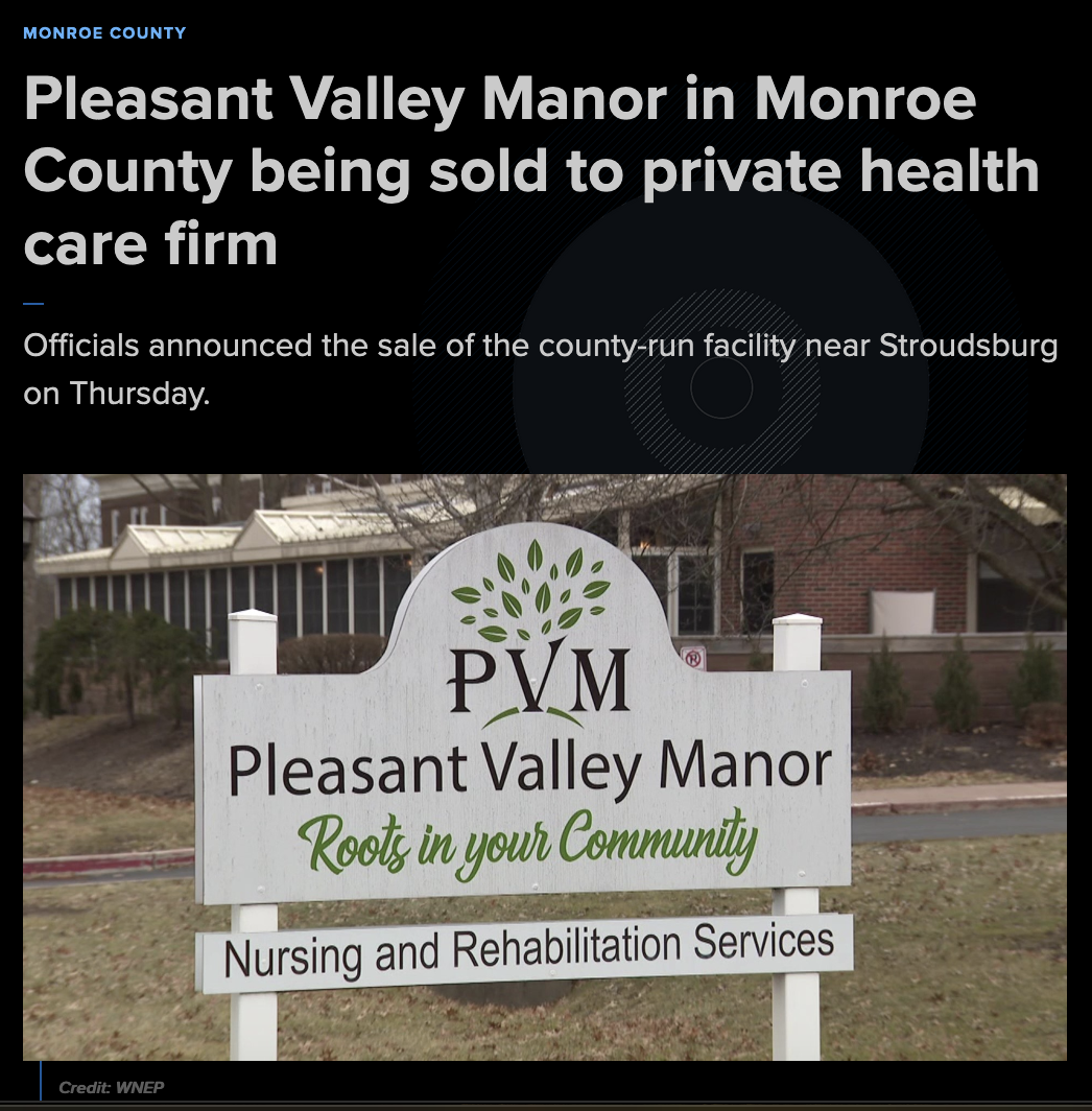 Full article: https://www.wnep.com/article/news/local/monroe-county/pleasant-valley-manor-in-monroe-county-being-sold-to-private-health-care-firm-outcome-healthcare/523-7bfd4235-6fcb-42bc-9d68-f8ec0b24201d
